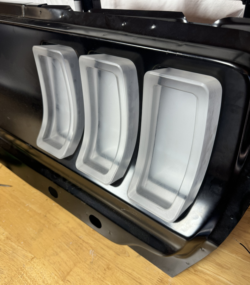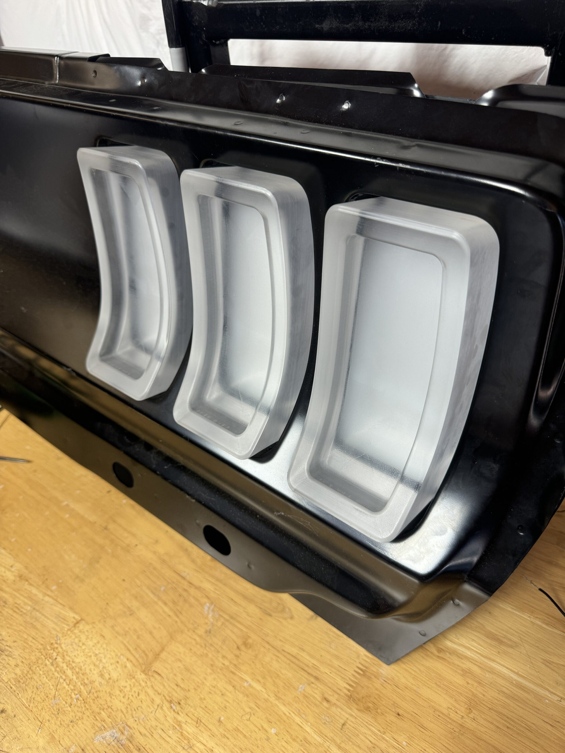 These complete taillight assemblies come with full sized cnc machined acrylic lenses that poke out and follow the contour of the tailpanel.